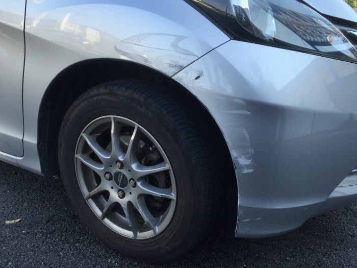 フリード右フロントフェンダーとフロントバンパーの修理です。